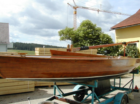 Ein rundherum glücklicher Eigner ist das Ergebnis zu einem überholten Boot. Die zehn Lackschichten wurden am Rumpf mit Eiche-mittelbraun-Beize etwas eingefärbt - im Ergebnis einfach nur schön! Das Deck bekam ebenfalls 10 Lackschichten und sieht nun im Vergleich zu vorher nur noch edel aus.